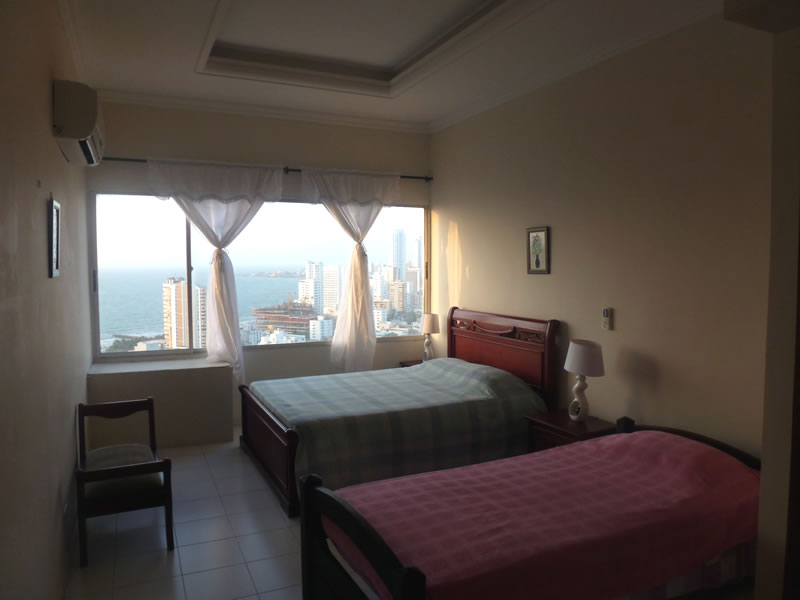 2000 Square Foot Apartment on the 24 forth floor, Featuring a 900 square foot balcony, great for having some parties or get together. This apartment has the best view in Cartagena. Apartment has two bedrooms, two bath and maids quarters. Apartment is located across the street from the Hilton. Building has several stores and travel agencies located on the first floor.